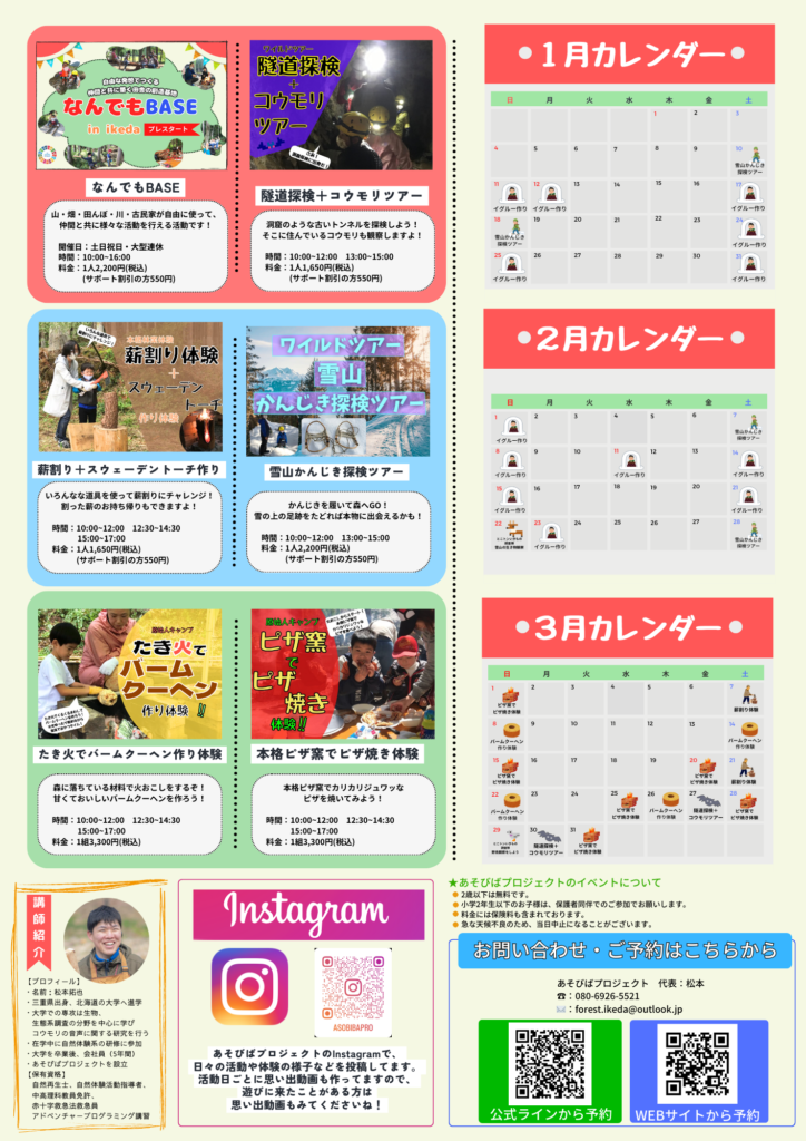 1月・2月・3月のイベントカレンダーができましたので、お送りしますね👍✨